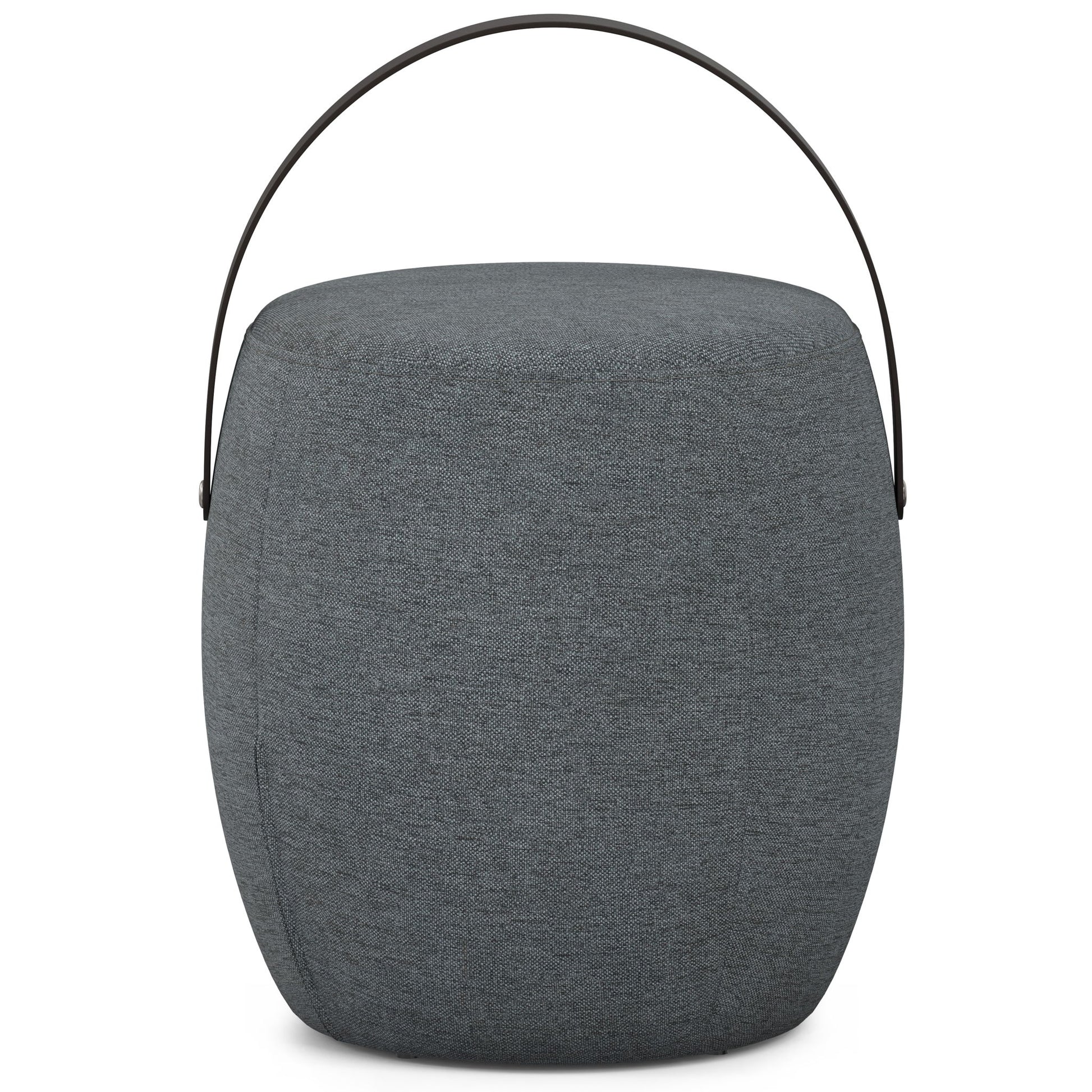 - Features a space-conscious round shape with a wood handle detail that is great for moving the footstool
