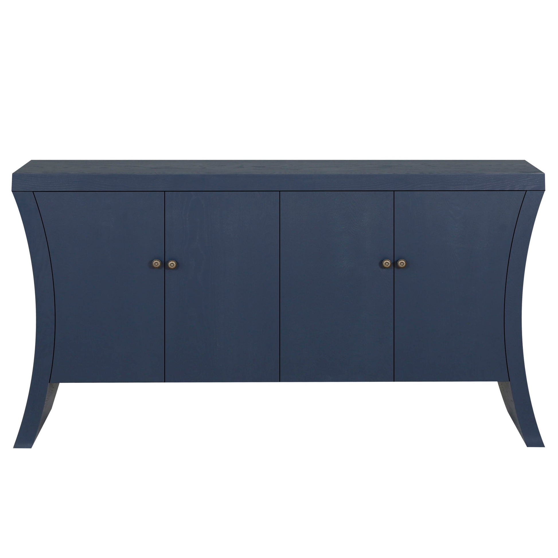 Refined Industrial 4 Door Credenza With Wooden Arc Legs & Bronze Clasps, Advanced Storage Design - Navy Blue59.0"W x 15.55"D x 31.5"H - 73.04 lb