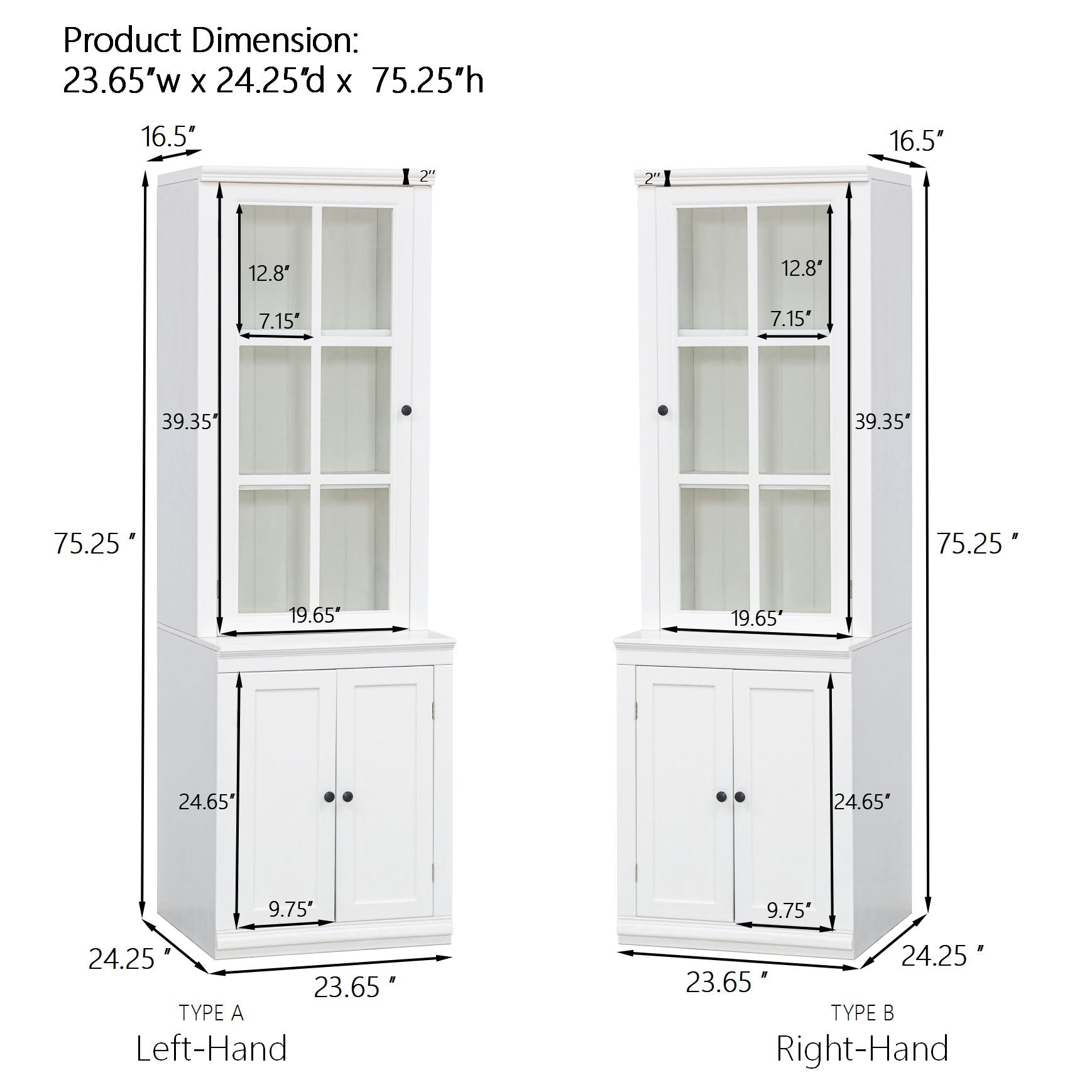 Retro Style Hutch Cabinet With Single Glass Door, China Cabinet For Home, Office, Or Studio - White23.65"W x 24.25"D x 75.25"H - 103.18 lb