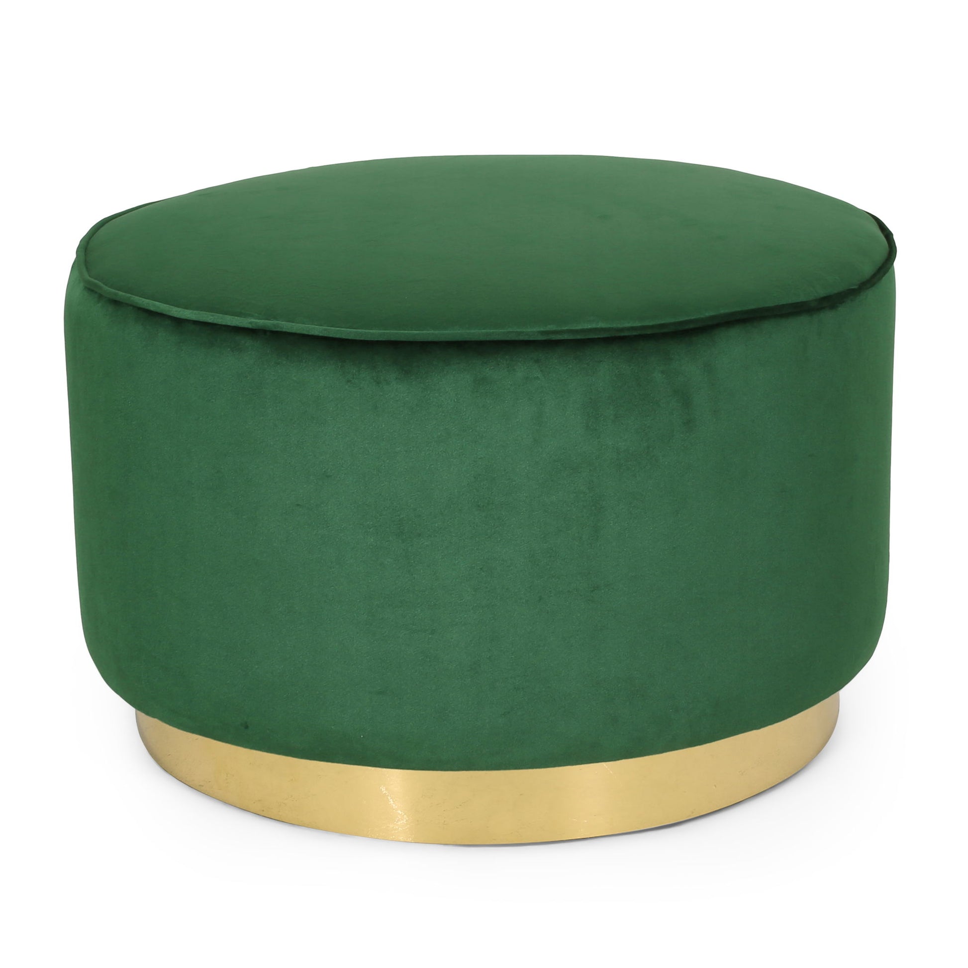 Round Velvet Ottoman, Upholstered Foot Stool For Living Room, Entryway - Emerald28.0"W x 28.0"D x 18.0"H - 32.08 lb