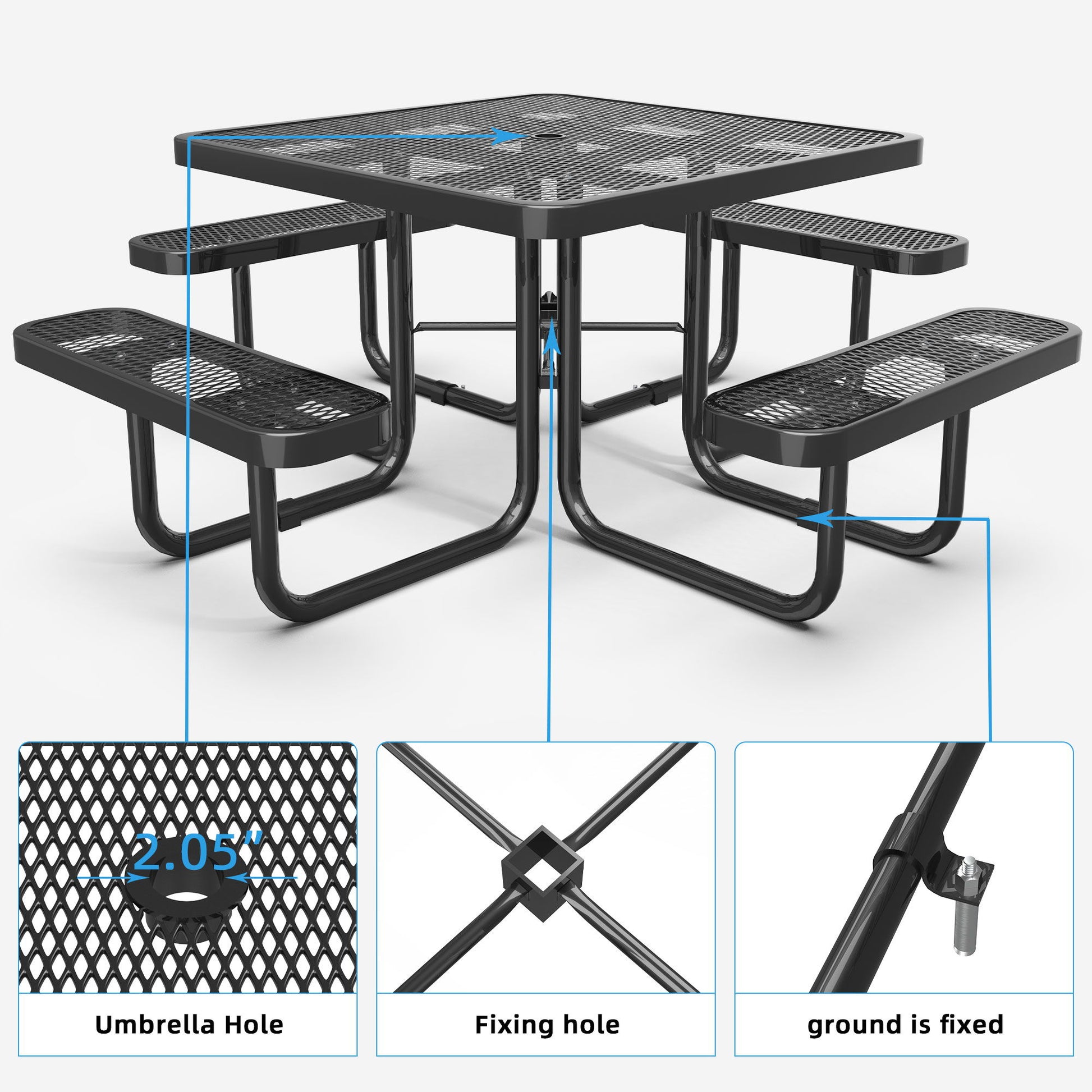 Square Outdoor Picnic Table With Umbrella Pole - Black 46.0"W x 46.0"D x 29.9"H