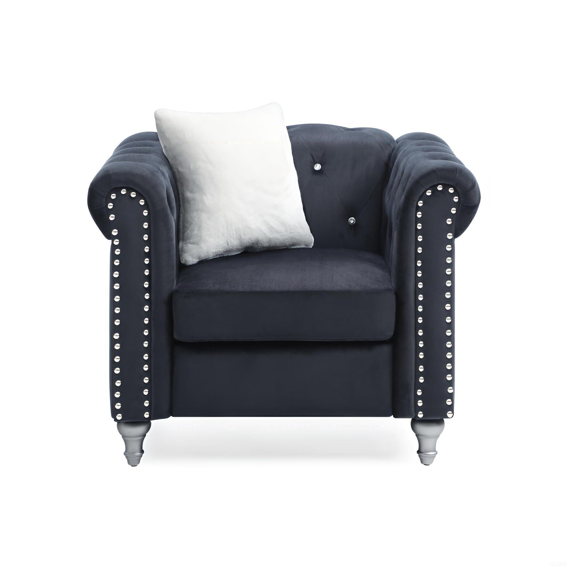 Hand Applied Nailheads Accent: Contrasting nailheads add a touch of sophistication to the rich velvet micro suede cover for a stylish look.
