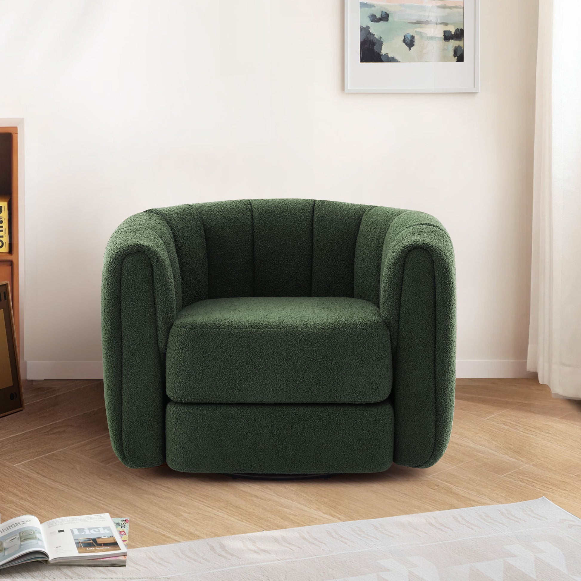Swivel Accent Chair For Living Room, Sofa Chairs With Base Side, Comfy Swivel Accent Chair With Wide Upholstered, For Living Room - Green / Dark Green29.53"W x 37.01"D x 27.56"H - 49.2 lb