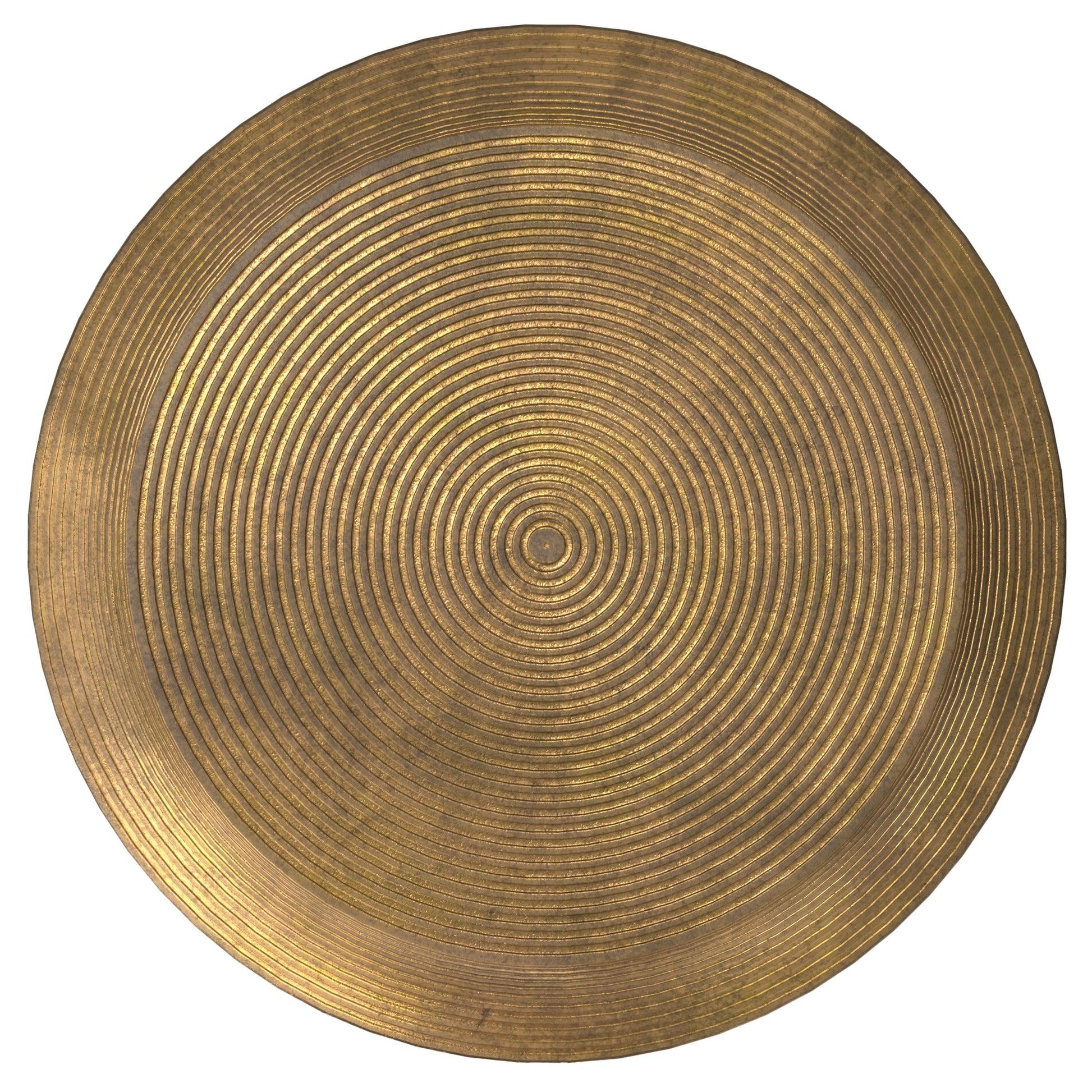 • Hand-finished in Antique Brass with a subtle texture on the base and a ringed pattern on the tabletop that make each piece unique.