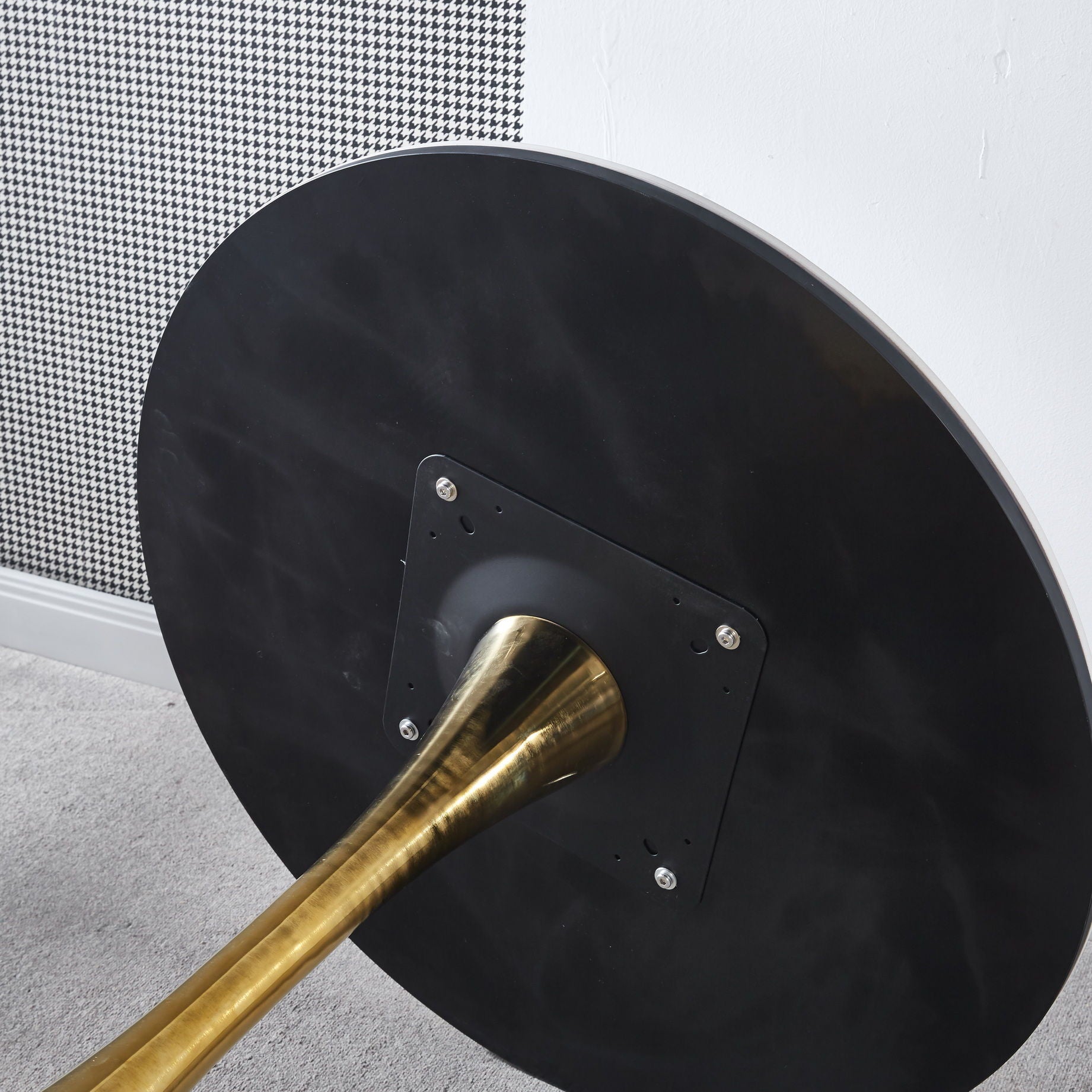 Tulip Table Mid-Century Dining Table For 2 - 4 People With Round MDF Table Top, Pedestal Dining Table, End Table Leisure Coffee Table, Ceramic And MDF Top - Golden / White31.49"W x 31.49"D x 28.74"H - 57.0 lb