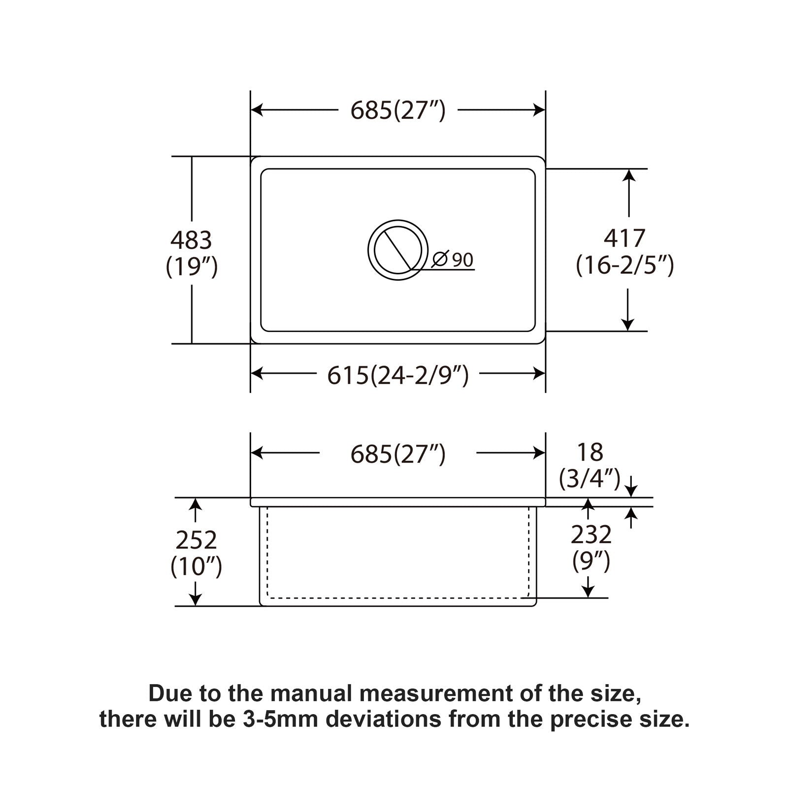 27" Undermount Single Bowl Kitchen Sink Rectangular Deep Bas With Dual Mount Installation - White27.0"W x 19.0"D x 10.0"H - 55.99 lb