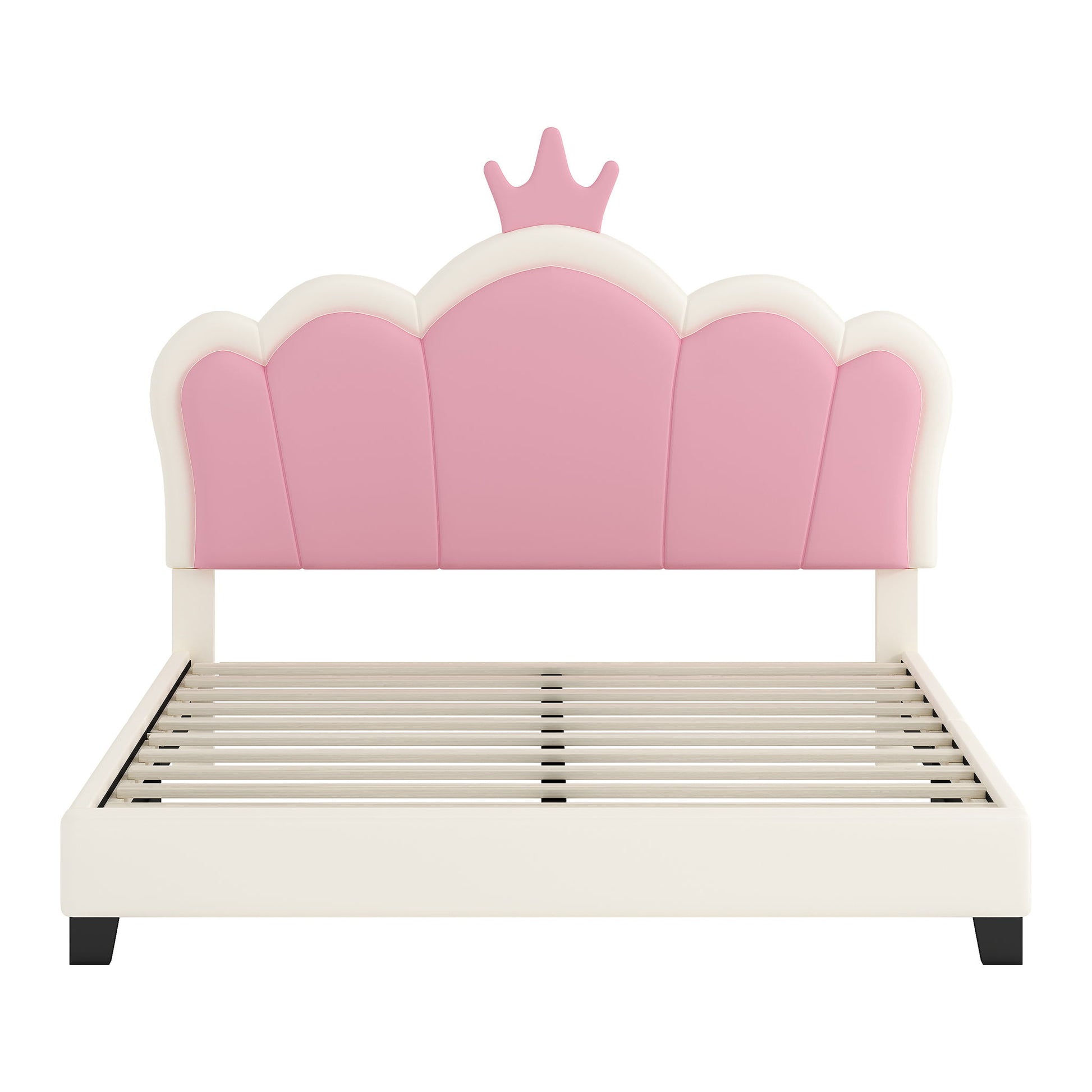 Full Size Upholstered Princess Bed & Crown Headboard, Full Size Platform Bed With Headboard And Footboard - White / Pink80.0"W x 61.5"D x 44.0"H - 70.0 lb