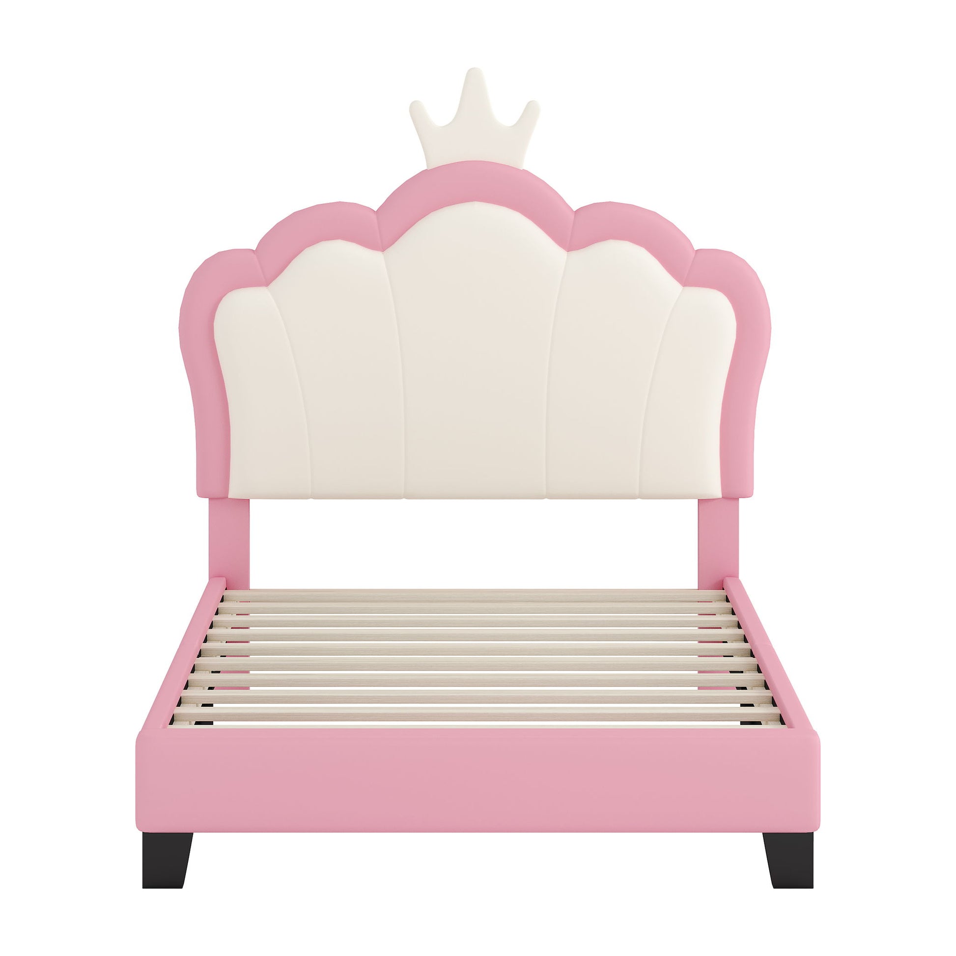 Twin Size Upholstered Princess Bed & Crown Headboard, Twin Size Platform Bed With Headboard And Footboard - White / Pink80.0"W x 46.5"D x 44.0"H - 55.0 lb