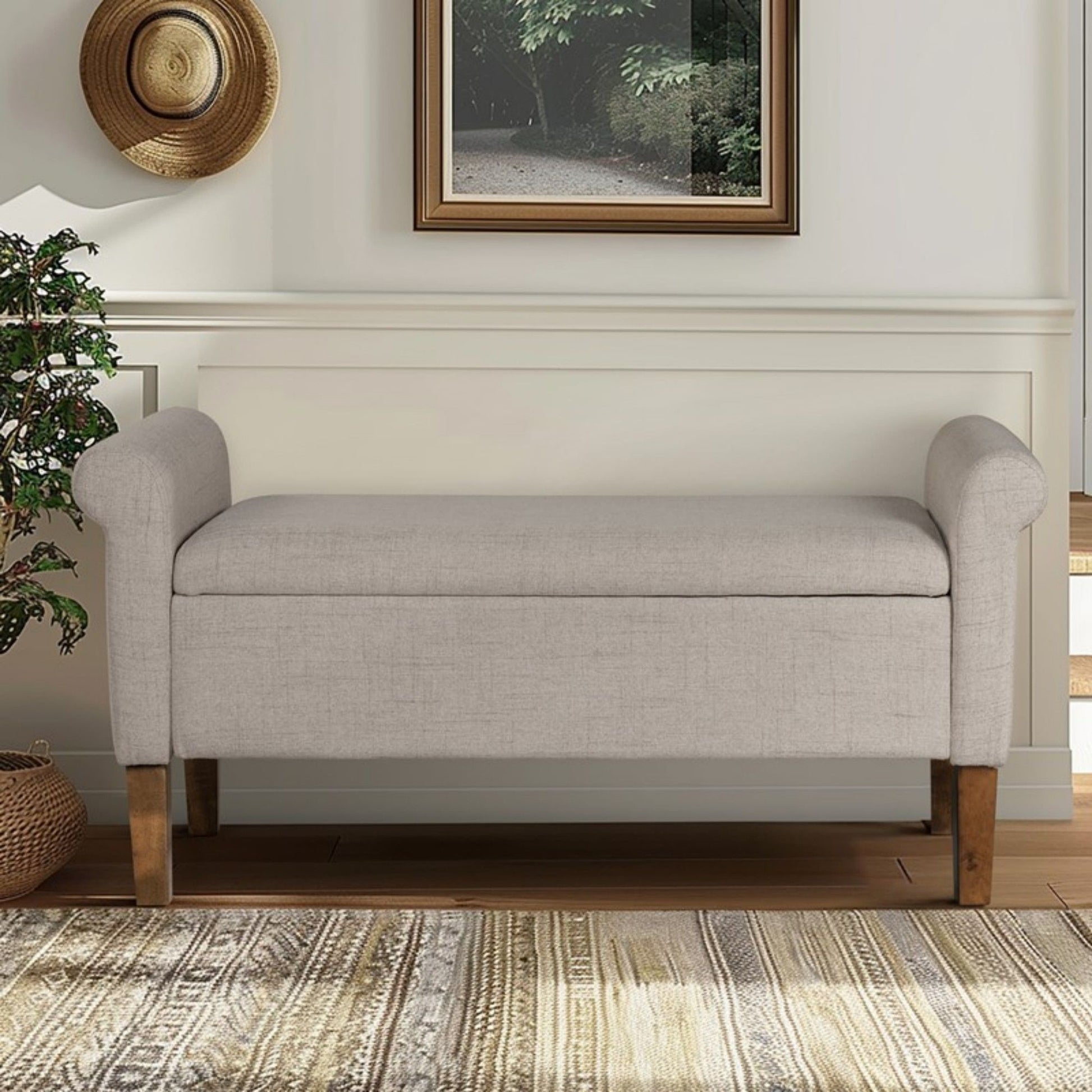 Upholstered Storage Bench With Rolled Armrests - Beige17.5"W x 46.0"D x 22.0"H - 51.7 lb