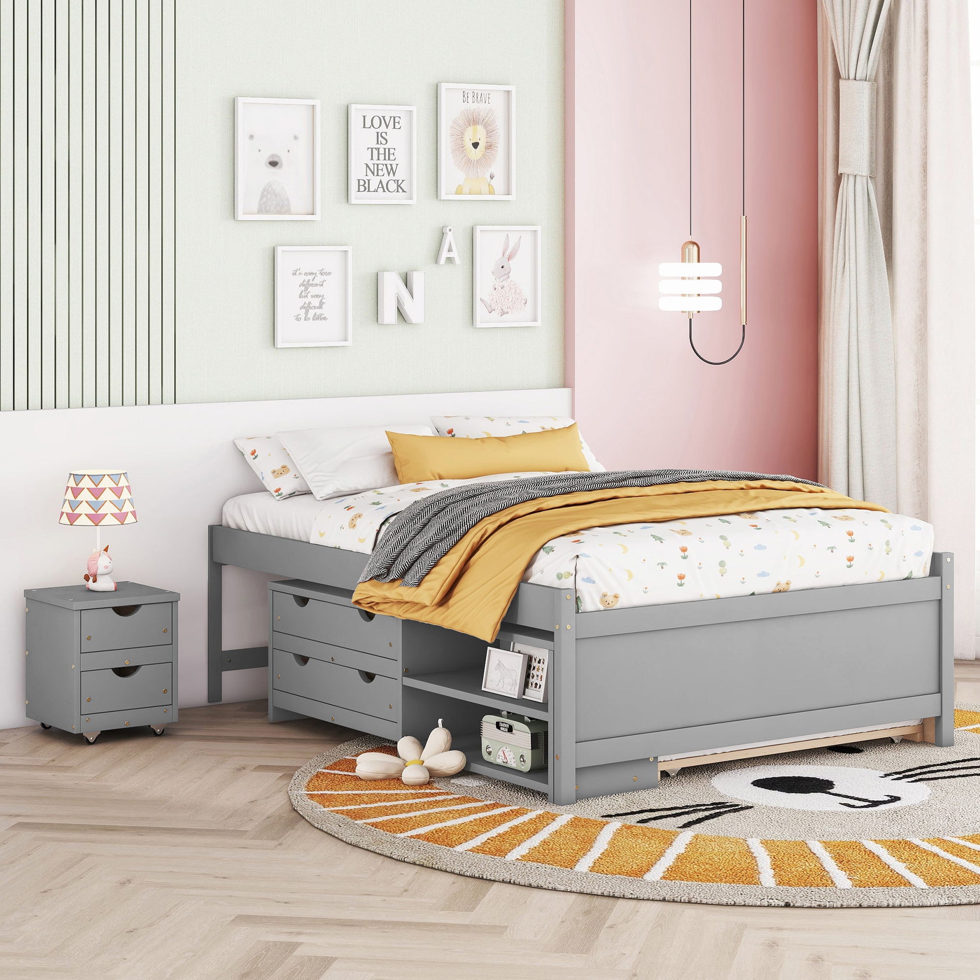 Versatile Full Bed With Trundle, Under Bed Storage Box And Nightstand - Gray78.2"W x 57.0"D x 20.3"H - 154.3 lb