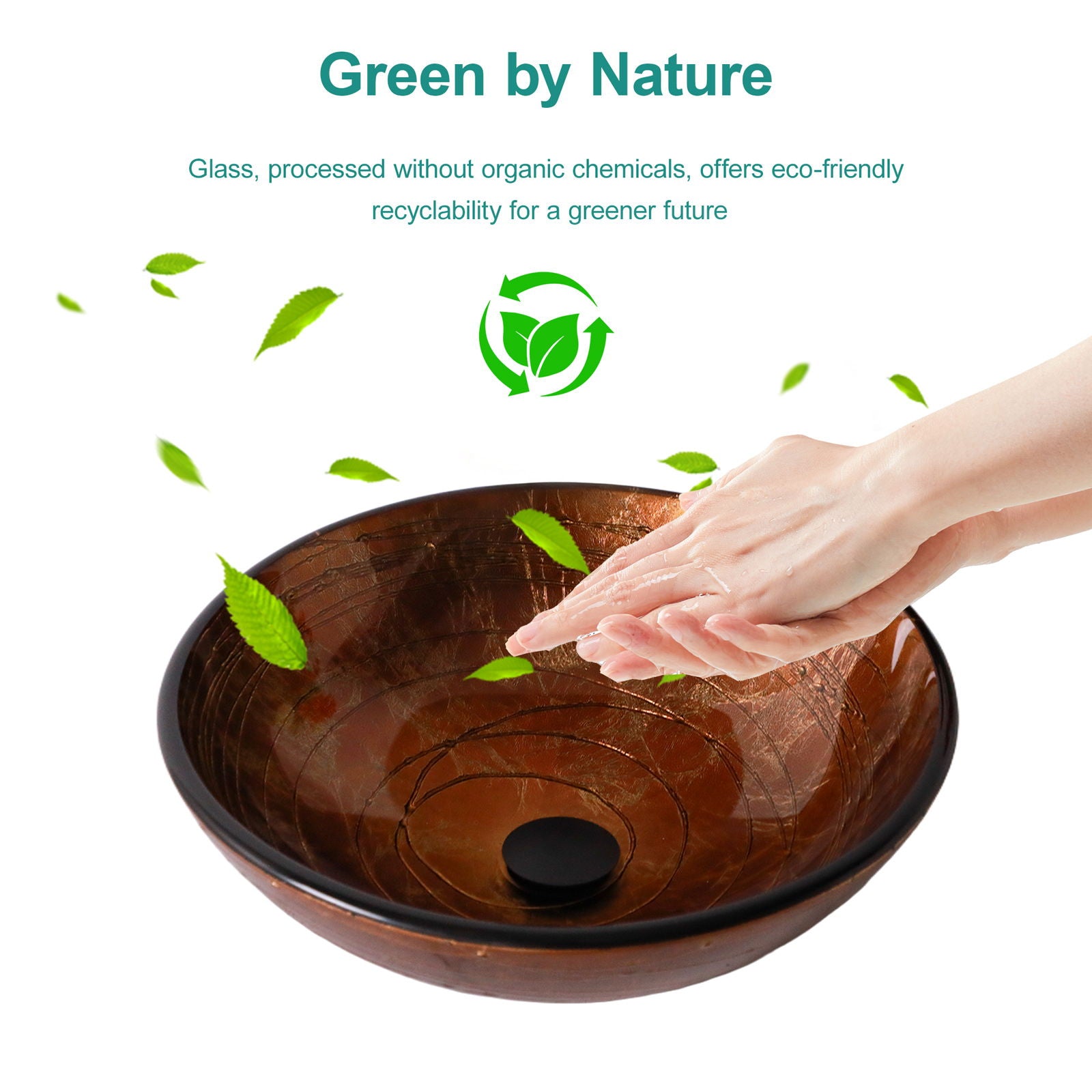 Vessel Bathroom Sink With Pop Up Drain, Round Bowl For Vanity Smooth - Brown16.5"W x 16.5"D x 5.13"H - 12.76 lb