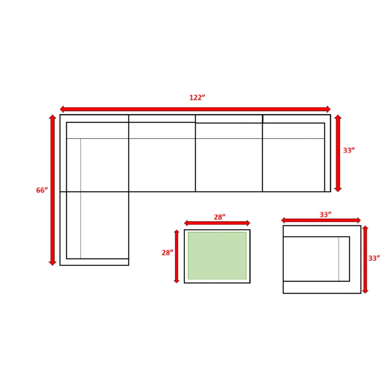 5 Person Outdoor Sectional Sofa Set With Frame And Glass Table - Espresso 232.0 lb